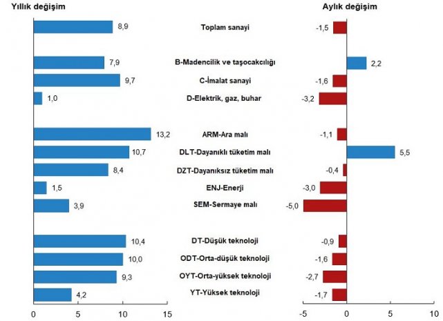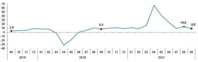 - TÜİK (Türkiye İstatistik Kurumu), 'Sanayi Üretim Endeksi - Eylül 2021' verilerini açıkladı. Buna göre yıllık bazda Sanayi Üretimi yüzde 8,9 oranında arttı.