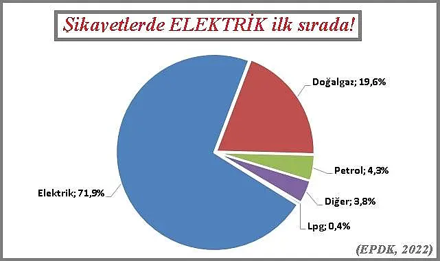 Enerji Piyasası Düzenleme Kurumu (EPDK), 2022 Yılı Faaliyet Rapuru'nu yayınladı. Tüketici şikayetlerine de yer verilen raporda, 2022 yılı için en fazla şikayettr elektrik sektörü ilk sırada yer adlı. Elektrik sektörünü 2. sırada doğal gaz ve 3. sırada da petrol - akaryakıt sektörü izledi. Ancak şikayetlerin 3'te 2'si elektrik sektörüne ait. Geri kalan 3'te 1Lik bölümde doğal gaz, petrel ve LPG sektörüne ait.