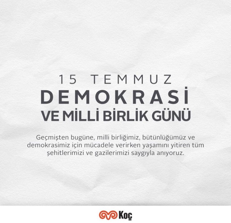 Enerji Ekonomisi - TÜPRAŞ (Türkiye Petrol Rafinerileri AŞ): Geçmişten bugüne, milli birliğimiz, bütünlüğümüz ve demokrasimiz için mücadele verirken yaşamını yitiren tüm şehitlerimizi ve gazilerimizi saygıyla anıyoruz.