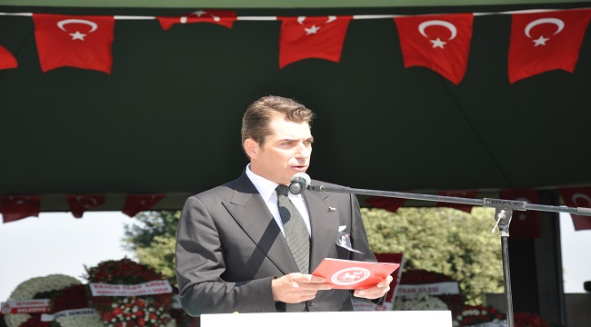 Konuşmasına Necip Fazıl’ın Zeybek şiirinden birkaç dize okuyarak başlayan İl Başkanı Ekrem Eray Arda, “Şair Necip Fazıl’ın da dediği gibi, bu acı sonbahar gününde zeybek ölmüş ama ardında koskoca bir demokrasi, özgürlük ve kalkınma davasını miras bırakmıştır. 17 Eylül bir utanç günü, Türkiye tarihine sürülmüş kara bir leke, apoletlerinin arkasına sığınmış habis akılların demokrasiyi infaz ettikleri acı bir sonbahar günüdür'' diyerek sözlerine devam eden Arda, “dönemin tüm kısıtlı imkanlarına rağmen Türkiye’yi kalkındırmayı, Türk milletinin refaha susamış topraklarını demokrasi ve adaletle kavuşturmayı, millet için çalışmayı dava edinmiş son nefesinde bile “Allah milletimize zeval vermesin” diyebilmiş böylesine bir millet adamını saygı ve rahmetle anıyor, onun açtığı yoldan taviz vermeden ilerleyeceğimizin bir kere daha altını çiziyoruz.” ifadeleriyle konuşmasını sonlandırarak sözü Demokrat Parti Genel Başkanı Sayın Gültekin Uysal’a bıraktı.