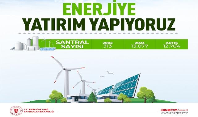 Türkiye'de elektrik üreten toplam 13 bin 77 adet (13.077) elektrik üreten santral var.