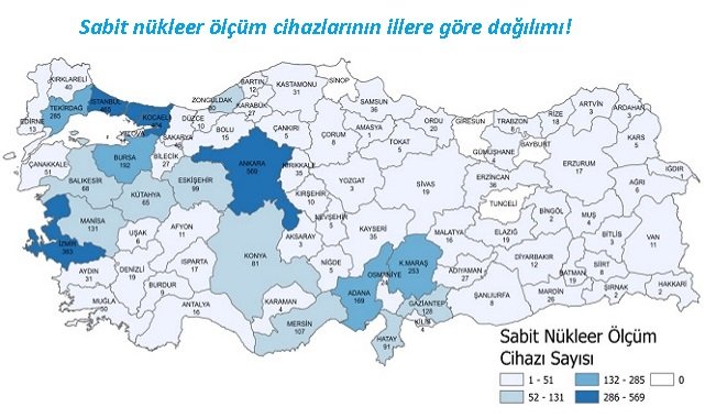 İllere göre nükleer ölçüm cihaz sayısı için aşağıdaki haritayı inzeleyiniz...