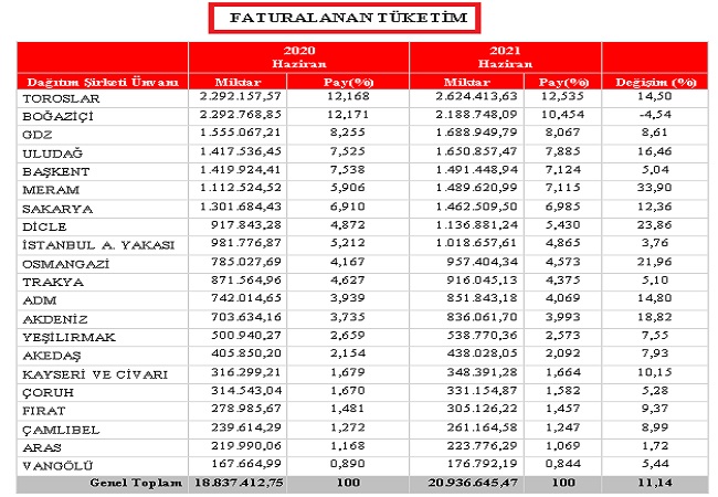 Bilgi için kaynak: Enerji Piyasası Düzenleme Kurumu (EPDK), Elektrik Piyasası Sektör Raporu - Haziran 2021.