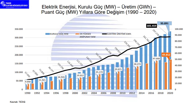1990 -2020 Elektrik Kurulu Gücü Gelişimi