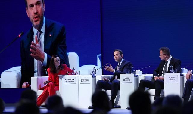 Bayraktar, Rusya, Azerbaycan ve İran’dan gaz ithal ettiklerini, bunun yanı sıra altyapıya önemli yatırım yaptıklarını kaydederek “Gazlaştırma kapasitemizi büyük oranda artırdık. Böylece LNG olarak ihtiyacımızı tedarik edebiliyoruz.” diye konuştu. Karadeniz’deki Sakarya Gaz Sahası’nda günlük 2,6 milyon hanenin doğal gaz ihtiyacını karşıladıklarını bildiren Bayraktar, “2026’da 7,5 milyar metreküp gaz üretimine ulaşacağız ve uzun vadede 2030’da bu üretimi 3 katına çıkarmak istiyoruz.” dedi.