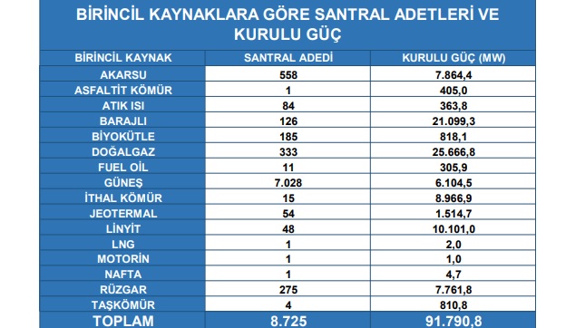 -Türkiye'nin elektrik üreten santral sayısı 8.725 adete yükseldi....