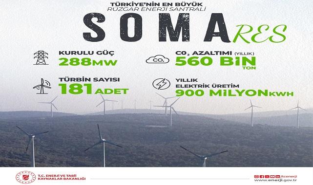 - ''288 MW kurulu gücü ile Türkiye’nin en büyük rüzgar enerjisi santrali Soma RES''