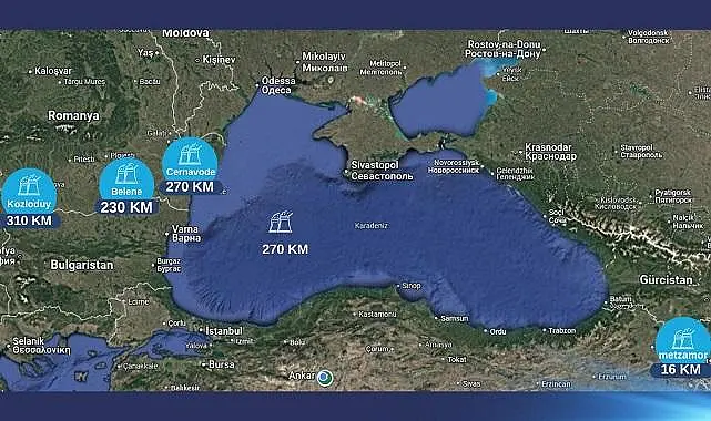 Türkiye'nin batı sınırlarında faaliyette olan nükleer santraller: Kozloduy nükleer santrali 310 kilometre (km), Belene nükleer santrali 230 km, Cernavode nükleer santrali 270 km. Doğusun'daki en yakın nükleer santral ise, Metzamor nükleer santrali 16 km.