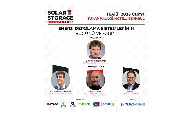 Solis Renewable Hub tarafından, küresel güneş enerjisi medyasının prestijli yayınlarından PV Magazine Group stratejik ortaklığı ve Türkiye Güneş Enerjisi Sanayicileri ve Endüstrisi Derneği GENSED’in desteğiyle düzenlenen Solar+Storage Exclusive Forum, 31 Ağustos- 1 Eylül 2023 tarihleri arasında İstanbul Tüyap Palace Hotel'de gerçekleştirilecek.