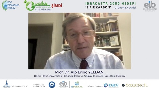 Tükriye’nin toplam küresel sera gazı emisyonları içindeki payının yüzde 1,1 civarında olduğunu, Türkiye’nin iklim krizine çok yüksek bir katkı yapmadığını sanıldığını belirten Kadir Has Üniversitesi İktisadi, İdari ve Sosyal Bilimler Fakültesi Dekanı Prof. Dr. Alp Erinç Yeldan, “Avrupa Yeşil Düzenin özellikle sınırda karbon uyarlaması mekanizmasına Türkiye tabii olursa ne gibi sonuçlar elde ederiz? Avrupa Birliği kapsam 1 altında bu sınırda karbon düzenlemesine Türkiye’nin ihracatına bir vergilendirme süretiyle yönelecek olursa; Türkiye’nin Avrupa Birliğine olan ihracatında 15.8 milyon ton sera gazı emisyonu içerilmiş olarak Avrupaya ihracat edilebiliyor. Yani, Avrupa ihracat ettiğimiz malların kapsam 1 altında 15.8 milyon tonluk bir ihracatı söz konusu. Eğer buna kapsam 2 emisyon hesaplamasını da katarsak, kabaca 14.7 milyon ton da oradan geliyor. Avrupa Birliği’nin 2026’dan sonra kapsam 1 altında sınırda karbon düzenlemesine geçeceğini duyurduğunu biliyoruz. Orada telaffuz edilen 5 sektör. Demir çelik, çimento, bazı gübre sektörleri, elektrik ve Alimünyum. Türkiye’nin Avrupa’ya olan ihracatının 4.8 milyar dolarını oluşturuyor. Avrupa Birliği’ne yaptığımız toplam ihracatın yarattığı istihdam ise 2 milyon kişiye ulaşıyor. Yani mesele sadece ihracatın vergilendirilmesi değil, istihdamında ciddi bir şekilde sekteye uğraması anlamına gelebileceğini görüyoruz.” dedi.