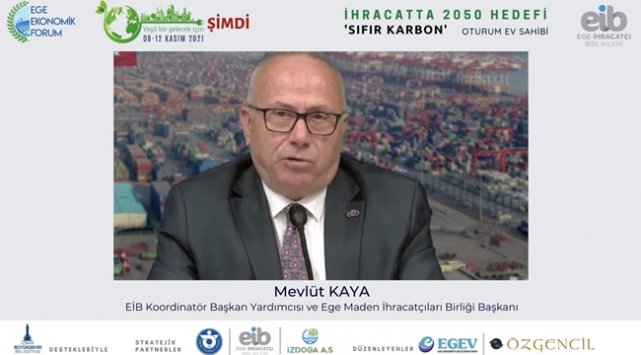 Ege Ekonomik Forum’da Saat 15:00’de gerçekleşen günün ikinci oturumu ‘İhracatta 2050 Hedefi ‘Sıfır Karbon’ Forumun Stratejik Partneri olan Ege İhracatçı Birlikleri ev sahipliğinde gerçekleşti. Oturumun açılış konuşması Ege İhracatçı Birlikleri Koordinatör Başkan Yardımcısı ve Ege Maden İhracatçıları Birliği Başkanı Mevlüt Kaya tarafından gerçekleştirildi.
