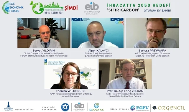 Oturumun açılış konuşması ardından Global Compact Yönetim Kurulu Üyesi & Forum İstanbul Yönetim Kurulu Üyesi Servet Yıldırım’ın yönetiminde gerçekleşen oturumda ise; ENSİA-Enerji Sanayicileri & İş Adamları Deneği Başkanı Alper Kalaycı, AB Türkiye Delegasyonu Ticaret ve Diğer AB Politikaları Daire Başkanı Bartosz Przywara, Uluslararası Karbon Eylem Ortaklığı Kıdemli Danışmanı Theresa Wildgrube, Kadir Has Üniversitesi İktisadi, İdari ve Sosyal Bilimler Fakültesi Dekanı Prof. Dr. Alp Erinç Yeldan, küresel hedef “2050’de 0 Karbon” yaklaşımının Türkiye’nin ihracatı için nasıl bir etki oluşturacağını konuştular.