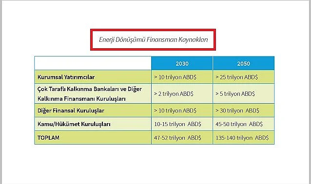 ENERJİ DÖNÜŞÜMÜ ÖNÜMÜZDEKİ 10 YILDA 135 MİLYAR DOLAR YATIRIM GEREKTİRECEK