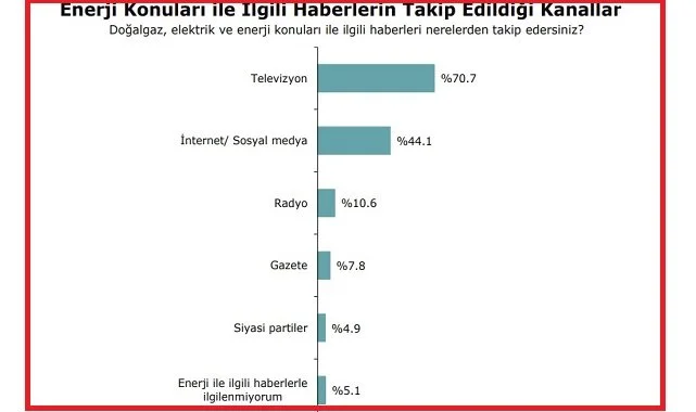 “Genel seçimlerde oy verdiğiniz partinin enerji politikaları konusunda ne derece bilgilisiniz?” sorusuna katılımcıların yüzde 42’si “ne bilgiliyim ne değilim”, yüzde 33,2’si “bilgiliyim”, yüzde 24,8’i de “bilgisizim” dedi. Siyasi partilerin enerji politikaları hakkında haberlerin yüzde 55,1 oranında televizyondan, yüzde 41,1 oranında internet/sosyal medyadan takip edildiği söylenirken; siyasi partilerin enerji politikaları hakkında bilgilerine başvurulan kurum ve kişiler yüzde 30,6 oranında aile/arkadaş çevresi, yüzde 23,7 oranında da enerji şirketleri olarak ortaya çıktı. Katılımcıların yüzde 36,2’si seçimlerde oy vereceği siyasi partinin enerji politikalarını dikkate aldığını, yüzde 24’ü ise almadığını söyledi.