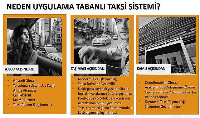 Uygulama tabanlı taksi taşımacılığı sistemi’ taksiciler açısından da faydalı olacak. Daha modern bir taksi işletmeciliği yapılacak. Yolcu bulmada verim artacak. Yolcu başına alınan komisyon ücretlerinin önüne geçilecek. En önemlisi taksicilerin kamuoyundaki olumsuz imajının düzelmesine adına büyük ve olumlu bir adım atılacak.