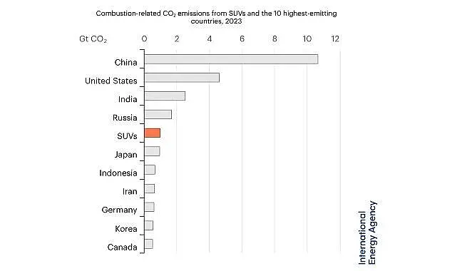 Uluslararası Enerji Ajansı (IEA), SUV araçlarla ilgili lginç bir paylaşım yaptı. SUV'lerin oluşturduğu çevre kirliliğine vurgu yapan IEA'nın yorumu: SUV'ler bir ülke olsaydı, dünyanın en büyük 5. CO2 yayıcısı olurlardı.'' IEA, ''SUV araçlar ve emisyonları'' konulu birde grafik yayınladı.