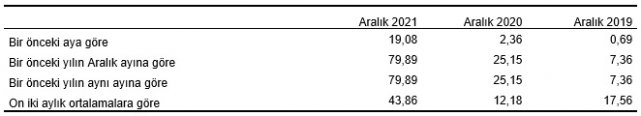 Yİ-ÜFE değişim oranları (%), Aralık 2021