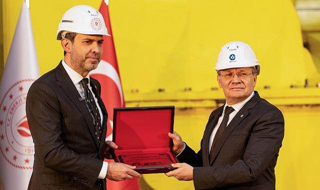 Akkuyu Nükleer Güç Santrali’nin 1’inci Ünitesi’nde türbin montajının tamamlanması dolayısıyla yapılan törene Enerji ve Tabii Kaynaklar Bakanı Alparslan Bayraktar ve Rusya Devlet Nükleer Enerji Kuruluşu Rosatom’un Genel Müdürü Alexey Likhachev katıldı.