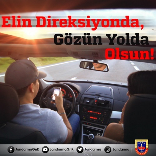 İçişleri Bakanlığı Jandarma Genel Komutanlığı (Jandarma Trafik)'in tatil dönüşü yapan sürücülere sosyal medya üzerinden yaptığı önemli hatırlatma şöyle: Bayram tatili bitti, seyir halinde telefon kullananların kaza yapma olasılığı, telefon kullanmayanlara göre 4 kat daha fazladır. Onun için; ya telefonunuzu kullanın, ya da aracınızı.