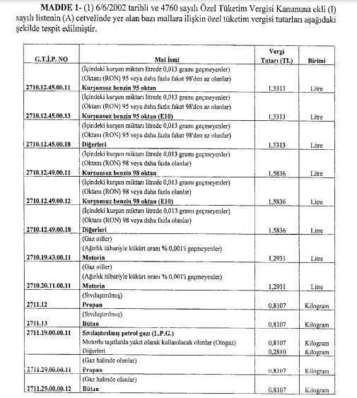 Yeni Özel Tüketim Vergisi (ÖTV) Tutarları!