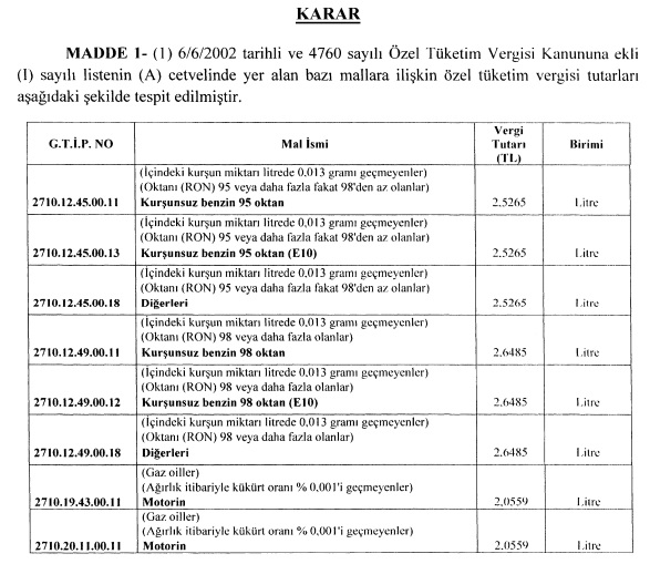 -YAYINLANDI: Konu 'Benzin ve Motorin ÖTV'si.