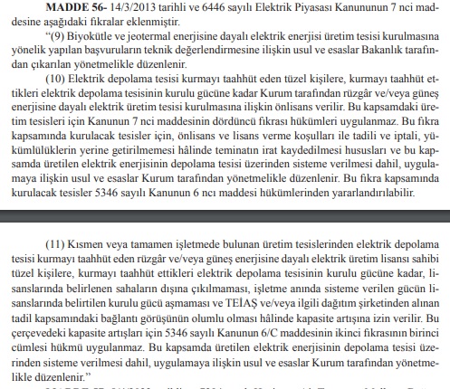 Rüzgar (RES) ve güneş (GES) enerjisi santrallerinde getirilen depolama teşviki bugünkü Resmi Gazete'de yayınlandı (5 Temmuz 2022 tarihli resmi Gazete).