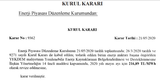 Enerji Piyasası Düzenleme Kurumu (EPDK), YEKDEM konulu yeni bir Kurul Kararı yayınladı. Bugünkü Resmi Gazetede yayınlanan EPDK Kurul Kararını aşağıda okuyabilirsiniz.