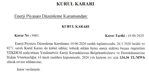 Enerji Piyasası Düzenleme Kurumu (EPDK) yayınladı. Konu, YEKDEM...