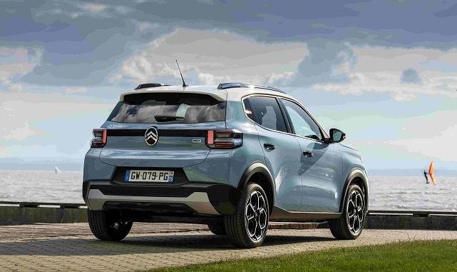 Aracın profilinde, teknik ve alttan kesik çizgiler, kemer hattı boyunca yeni imza aydınlatma kümelerine ve kapı panellerindeki ince kıvrımlara doğru akıyor. Bunların tümü ışığı yakalıyor ve görsel çekiciliği arttırıyor. İmza niteliğindeki kimlik, bagaj kapağının alt kısmındaki teknik çizgilerle arka tarafta da devam ediyor. Yukarıda, ön cephede kullanılan şeritteki deseni içeren ve büyük, merkezi yeni oval Citroën logosunun yanlarını dolduran yatay, parlak siyah dekoratif bir şerit yer alıyor. Yeni imzalı arka aydınlatmalar aracın köşelerine doğru uzanıyor ve ön farları yansıtan iki yatay ve bir dikey mercekten oluşuyor. Bagaj kapağın altında, aerodinamiğe yardımcı olmak ve otomobilin iddialı duruşunu daha da güçlendirmek üzere, köşeleri kaplayan gösterişli bir tampon yer alıyor. 17 inçlik elmas kesim alaşım jantlar güçlü duruşu destekliyor. Otomobil, 4,01 m uzunluğu ve 1,76 m genişliği ile kompakt bir ayak izine sahip.