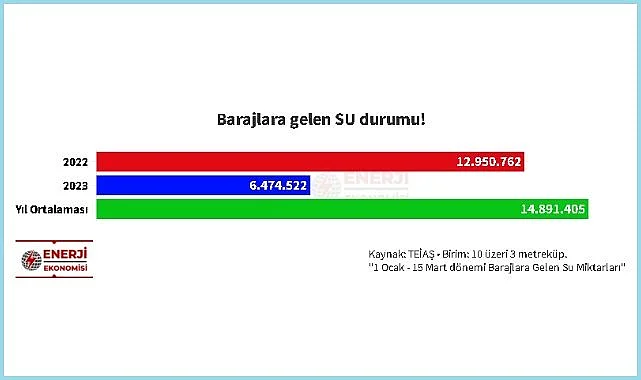 Resmi verilere göre 1 Ocak - 15 Mart dönemlerinde 2022 yılında barajlara gelen su miktarı toplam 12,9 milyar metreküp oldu. 2023 yılı aynı döneminde ise barajlara gelen su miktarı 6,4 milyar metreküpe geriledi. Yıl ortalaması ise 14,8 milyar metreküp.