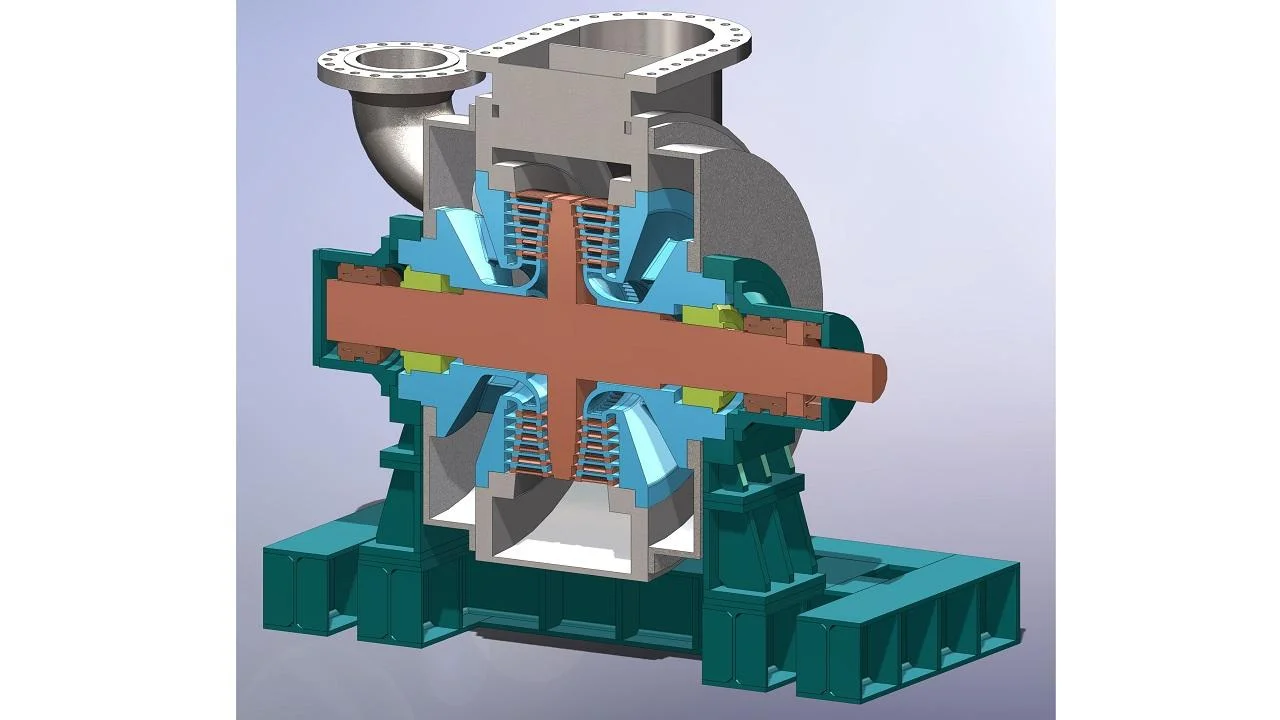 Bu yeni yapılandırmada, stator kanatları yan stator disklerine monte edilirken, rotor, geleneksel asma kurulum yerine yataklar arası bir düzenle destekleniyor. Bu yapısal gelişme, türbinin mekanik stabilitesini önemli ölçüde artırır, titreşimi azaltır ve operasyonel güvenilirliği iyileştirir.