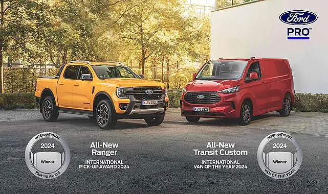 Transit Custom’un “2024 Uluslararası Yılın Ticari Aracı" (IVOTY) başarısıyla birlikte yeni Ford Ranger’ın “2024 Uluslararası Pick-up Ödülü'nü” (IPUA) kazanması sayesinde Ford Pro ayrıca özel bir rekora imza atmış oldu. Ford, 2013 ve 2020 yıllarında da IVOTY ve IPUA ödüllerini birlikte elde etmişti.