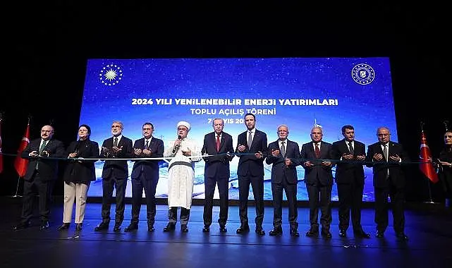 - Türkiye, geçen yıl toplam yatırım değeri yaklaşık 5 milyar dolar olan 6 bin 182 elektrik üretim santralini devreye aldı. Toplam kurulu gücü 6 bin 818 megavat olan santrallerin yüzde 98’ini yenilenebilir enerji santralleri oluşturdu. Santrallerin resmi açılışını yapan Cumhurbaşkanı Recep Tayyip Erdoğan, “Hedefimiz, Türkiye'yi kaynakta ve teknolojide net ihracatçı yapmaktır.” dedi. Beştepe Kongre ve Kültür Merkezi'nde 2024 Yılı Yenilenebilir Enerji Yatırımları Toplu Açılış Töreni düzenlendi. Törene Cumhurbaşkanı Erdoğan’ın yanı sıra Enerji ve Tabii Kaynaklar Bakanı Alparslan Bayraktar ile çok sayıda davetli katıldı.