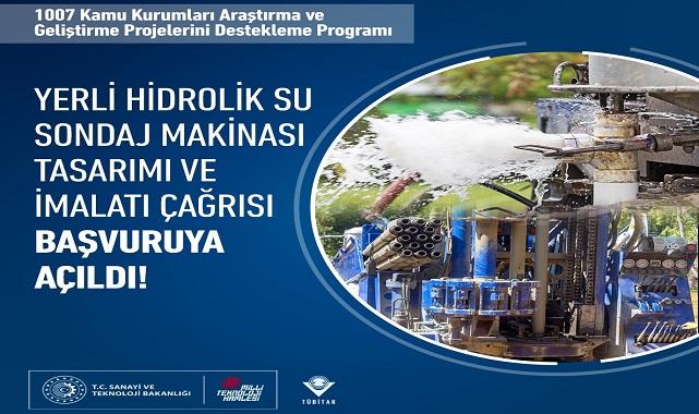 TÜBİTAK duyurusu... ''Bu çağrı ile ülkemizin yeraltı suyu potansiyelinin araştırılması, yaşanabilecek afetlerde ve iklim değişiklikleri sonucu oluşabilecek su tedarik sıkıntılarında yeraltı sularından hızlı ve etkin çözüm üretilmesi, uluslararası standartlarda yerli hidrolik su sondaj makinasının tasarım, analiz, prototip imalatı ve testlerinin gerçekleştirilmesi amaçlanmıştır.
