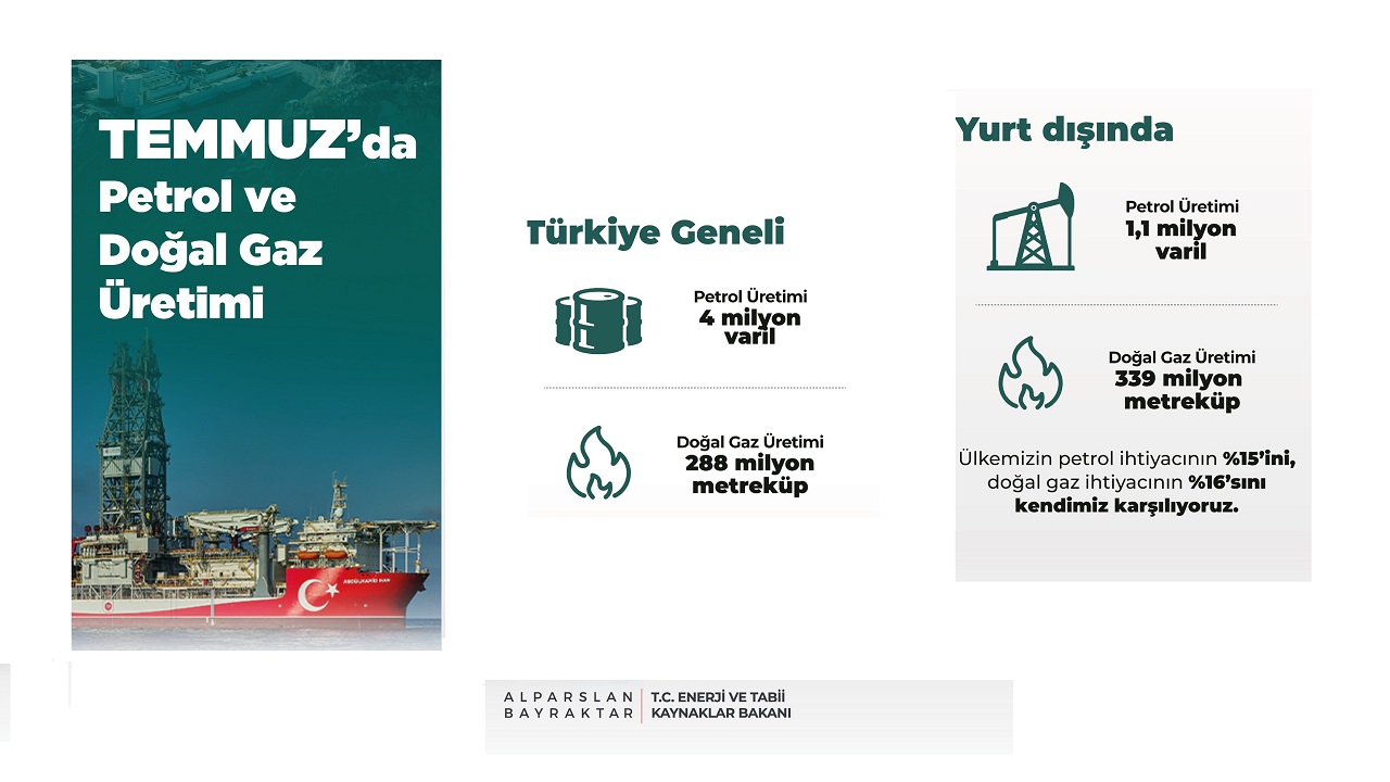 - Yurt dışında 1,1 milyon varil petrol, 339 milyon m³ doğal gaz ürettik.
