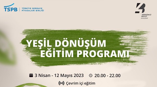 Türkiye Sermaye Piyasaları Birliği (TSPB), 'Yeşil Dönüşüm Eğitim Programı Başlıyor' başlığıyla, eğitimle ilgili bilgi paylaşımı yaptı (ayrınyılı bili için web adres: www.tspb.org.tr).