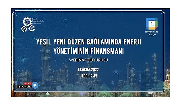 Haziran ayında yayınlanan “Yeşil Yeni Düzen Bağlamında Türkiye’de Enerji Dönüşümünün Finansmanı” ana raporunun ardından, raporun devamı niteliğindeki politika notlarına ilişkin webinar etkinliklerinden ilki “Yeşil Yeni Düzen Bağlamında Enerji Yönetiminin Finansmanı” başlığıyla 1 Kasım 2022’de 11.00-12.45 saatleri arasında yapılacak.
