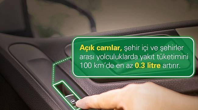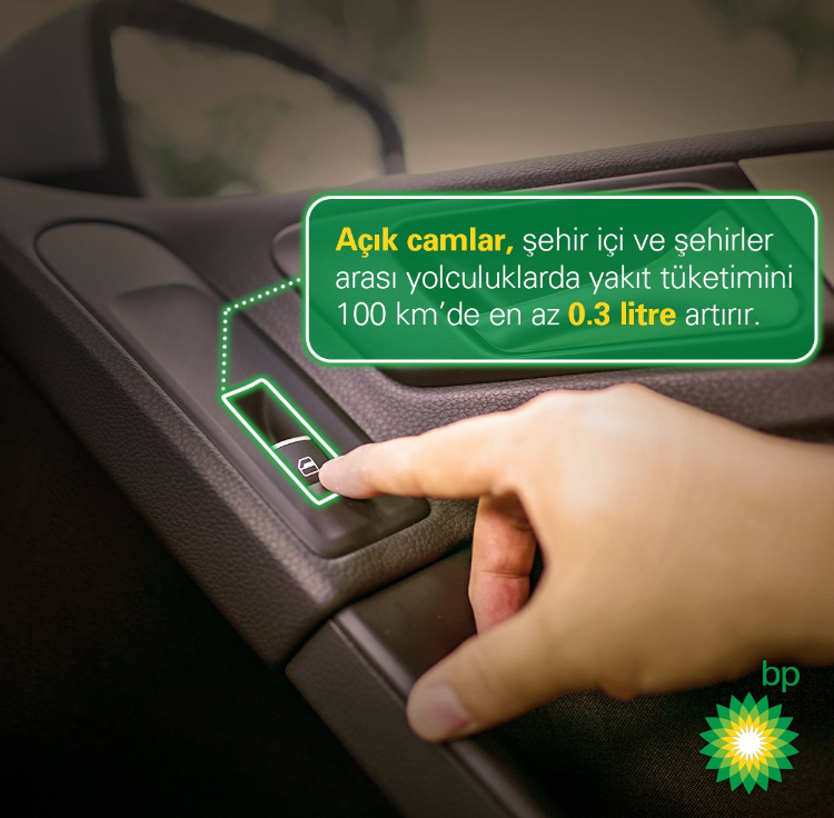 Akaryakıt şirketlerinden BP Türkiye, bu konuda şürücülere önemli bir hatırlatma yapıyor: Aracınızın camını açarak seyahat ettiğinizde; özellikle yüksek hızlarda araç içine dolan hava akımı nedeniyle oluşan ilave hava direnci, yakıt tüketiminin artmasına neden olur. Zorunlu kalmadığınız sürece aracınızın camlarını kapalı tutarak Yakıt Tasarrufu sağlayabilirsiniz.